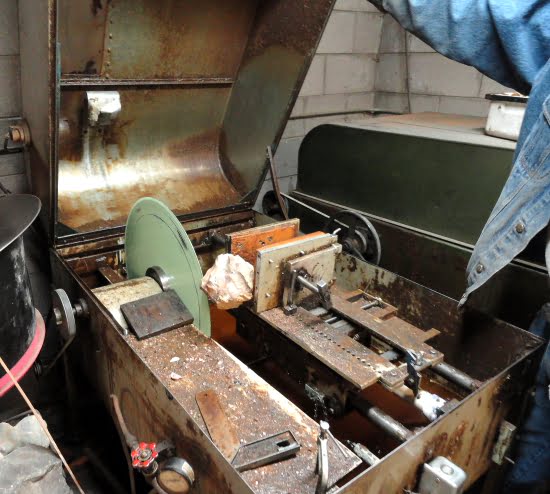 Setting up our 20″ Saw to cut a rock for slabs