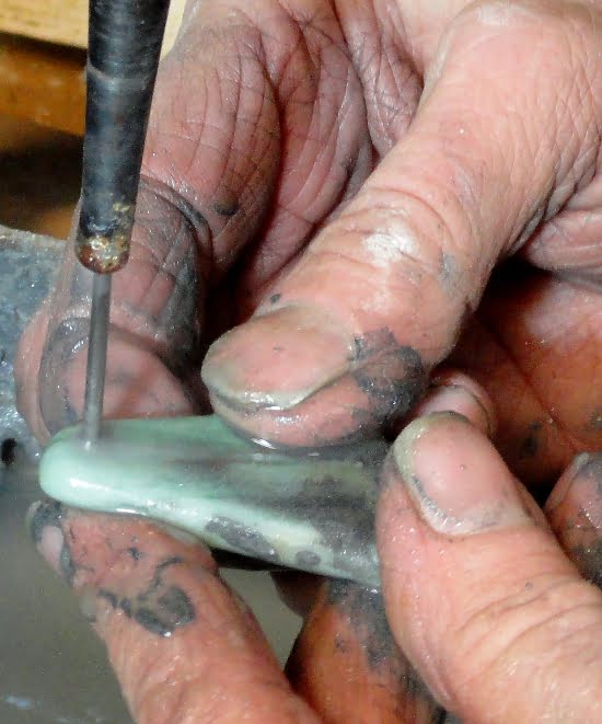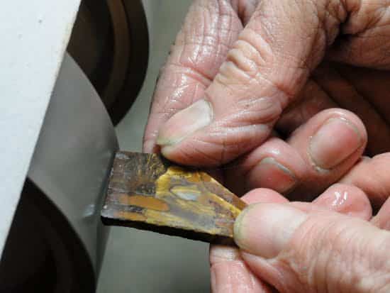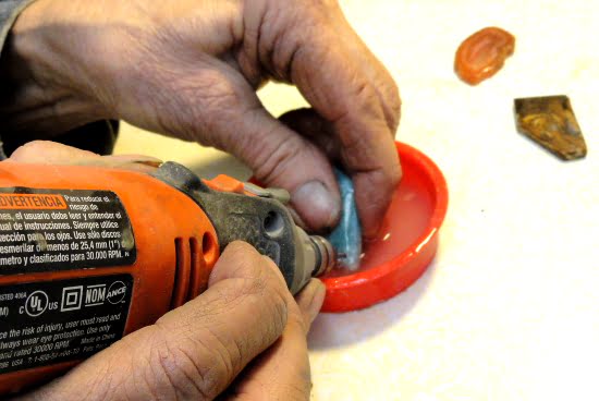 Grinding and smoothing stones with our grinder for cabachons