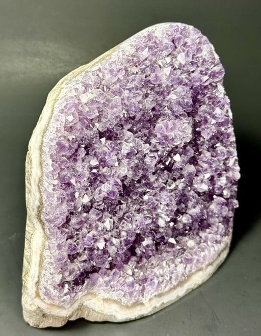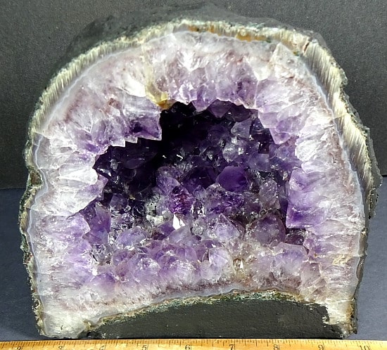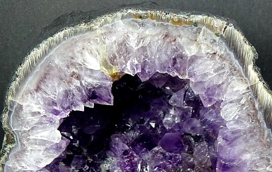 Amethyst is a purple variety of Quartz often used as an ornament. Upon exposure to heat, Amethyst generally becomes yellow, which some refer to as Citrine or “burnt” Amethyst. It occurs in color from a light, slightly pinkish violet to a deep grape purple. It is widely distributed as a mineral.