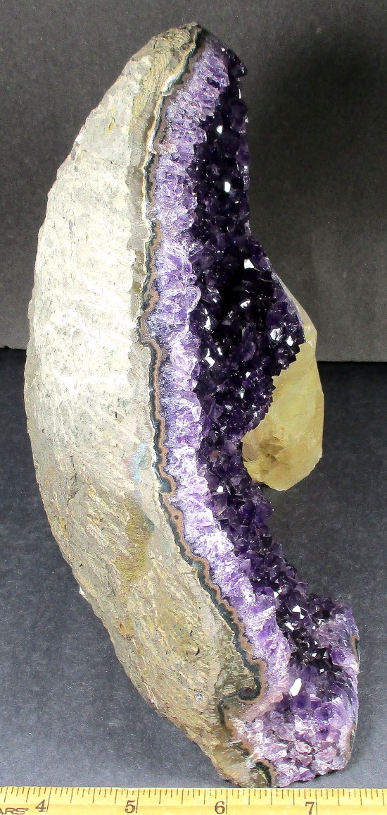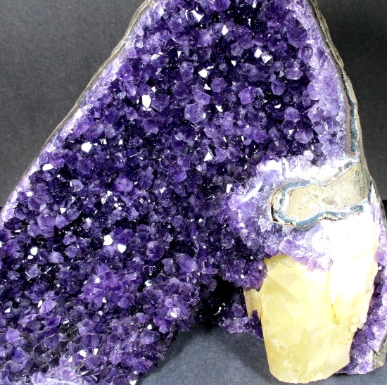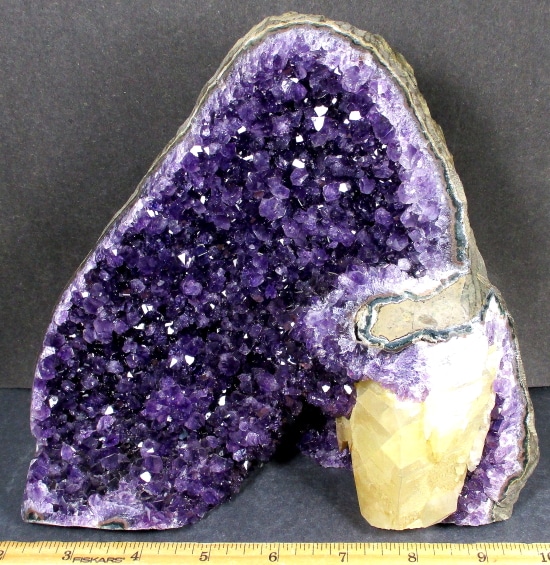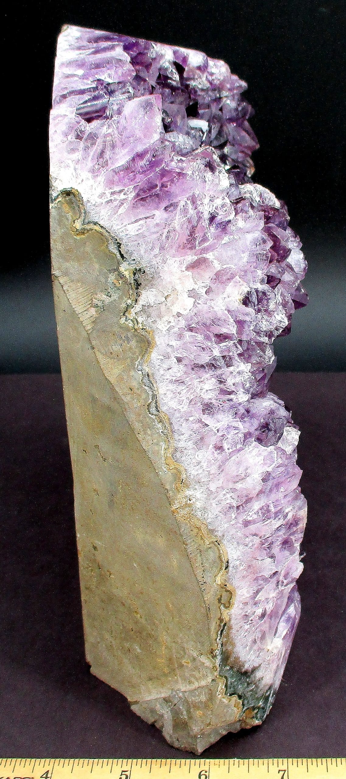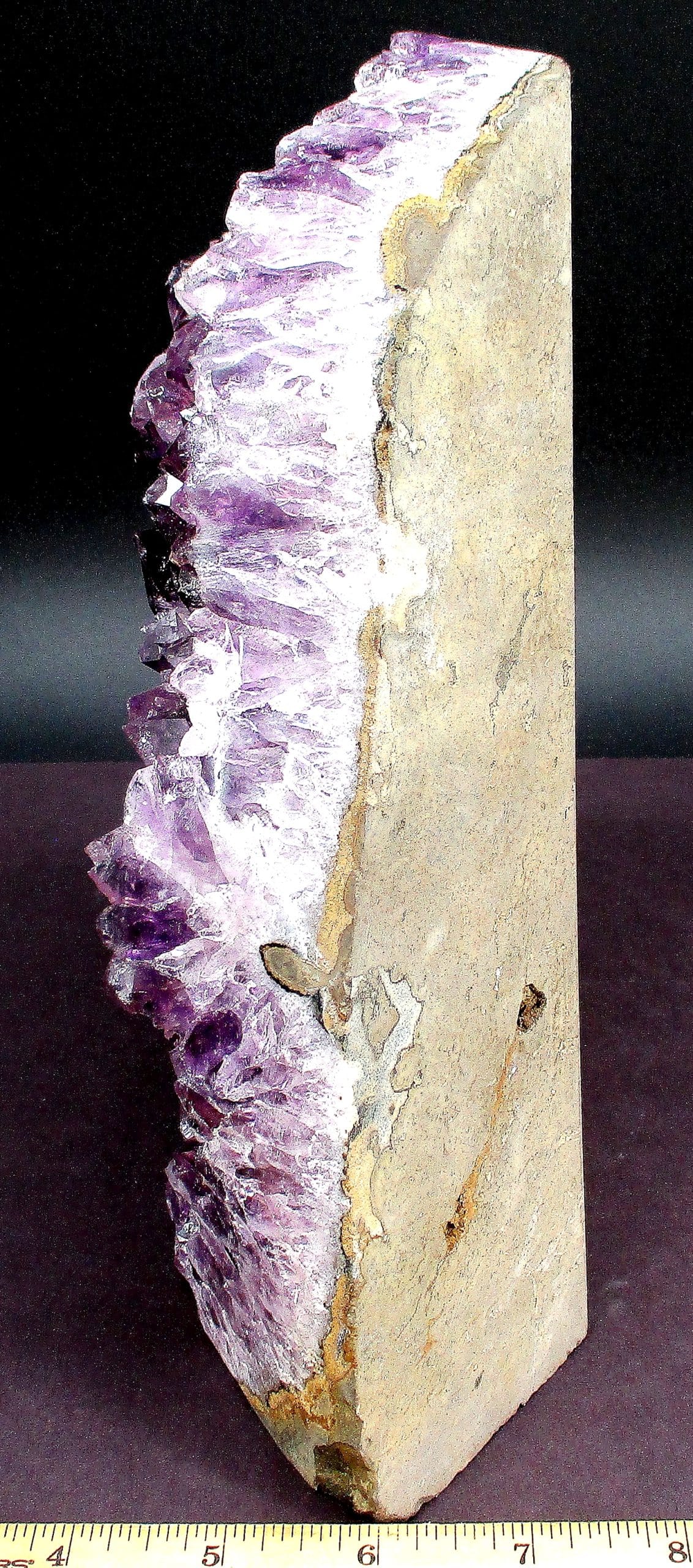 Here is a beautiful piece, a high-quality Purple Amethyst Cathedral Section with very sparkly accents.  This beautiful cathedral section has nice sized purple Amethyst points.  It measures 8 5/8″ wide x 3 1/4″ x 8 1/4″ tall, weighs nearly 11 1/4 pounds and has a super sparkly-shiny appearance. It does have an area with some broken crystals which is typical for this material and is reflected in the reduced price.  It makes an excellent piece for any area of your home or office.