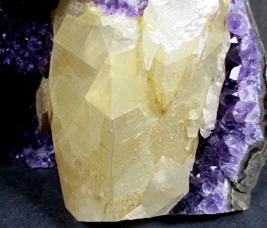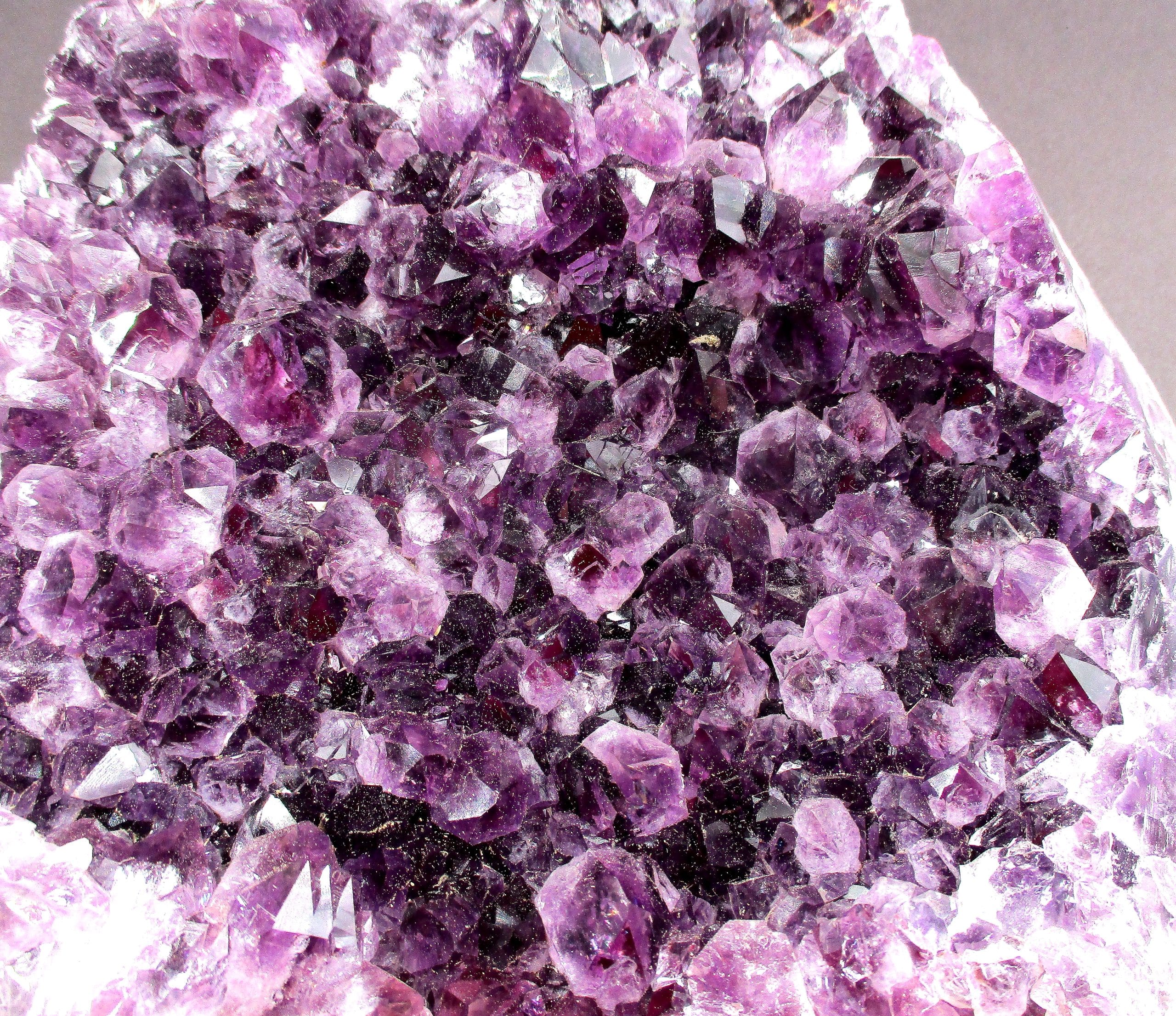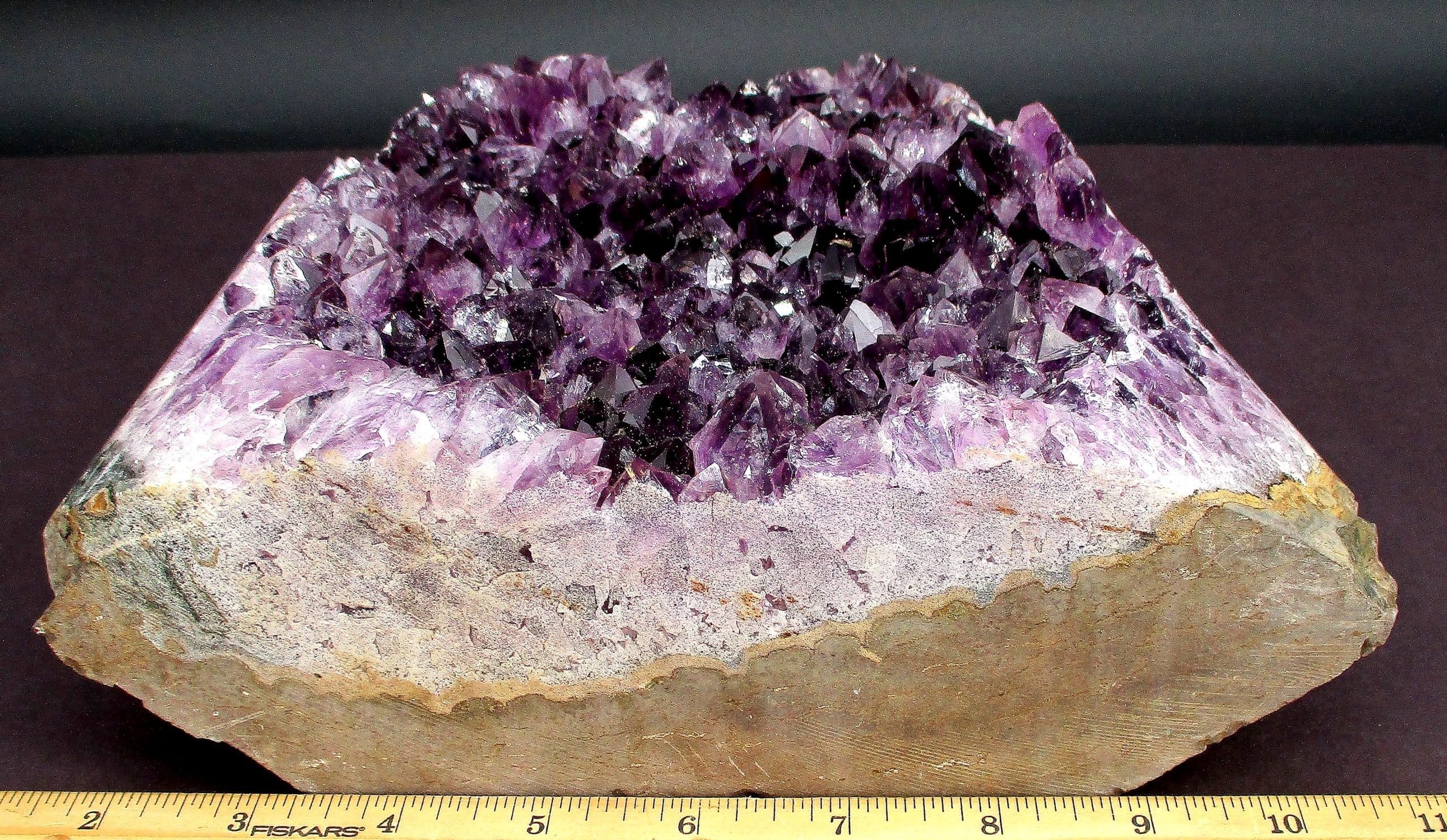 Amethyst is a purple variety of Quartz often used as an ornament.  Upon exposure to heat, Amethyst generally becomes yellow, which some refer to as Citrine or “burnt” Amethyst.  It occurs in color from a light, slightly pinkish violet to a deep grape purple.  It is widely distributed as a mineral.