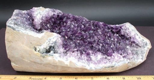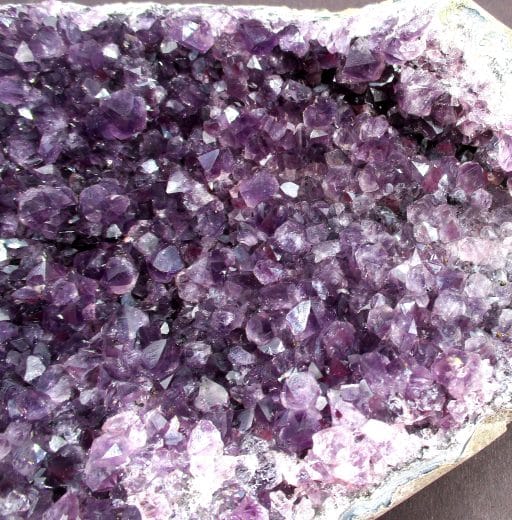 Amethyst is a purple variety of Quartz often used as an ornament. Upon exposure to heat, Amethyst generally becomes yellow, which some refer to as Citrine or “burnt” Amethyst. It occurs in color from a light, slightly pinkish violet to a deep grape purple. It is widely distributed as a mineral.