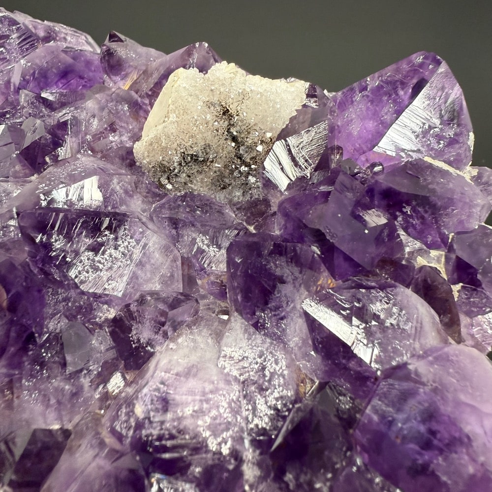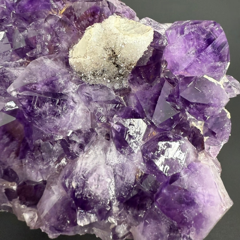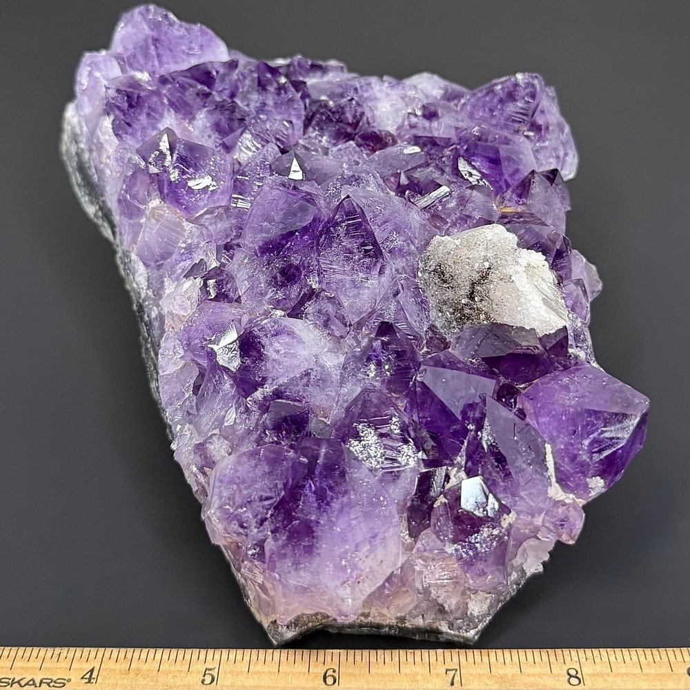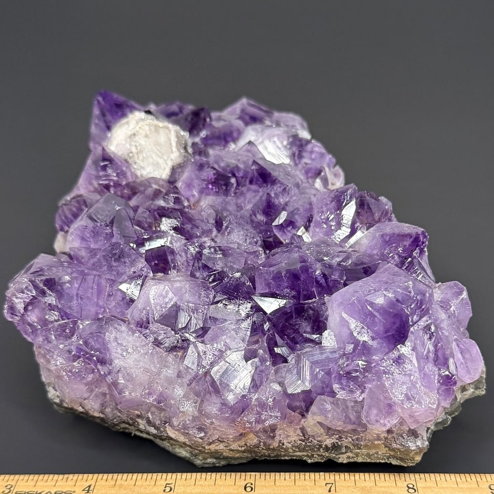 Amethyst is a purple variety of Quartz often used as an ornament. Upon exposure to heat, Amethyst generally becomes yellow, which some refer to as Citrine or “burnt” Amethyst. It occurs in color from a light, slightly pinkish violet to a deep grape purple. It is widely distributed as a mineral.