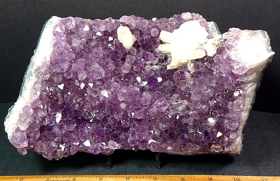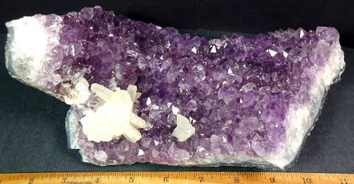 Amethyst is a purple variety of Quartz often used as an ornament. Upon exposure to heat, Amethyst generally becomes yellow, which some refer to as Citrine or “burnt” Amethyst. It occurs in color from a light, slightly pinkish violet to a deep grape purple. It is widely distributed as a mineral.