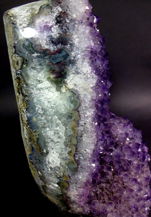 Amethyst is a purple variety of Quartz often used as an ornament.  Upon exposure to heat, Amethyst generally becomes yellow, which some refer to as Citrine or “burnt” Amethyst.  It occurs in color from a light, slightly pinkish violet to a deep grape purple.  It is widely distributed as a mineral.