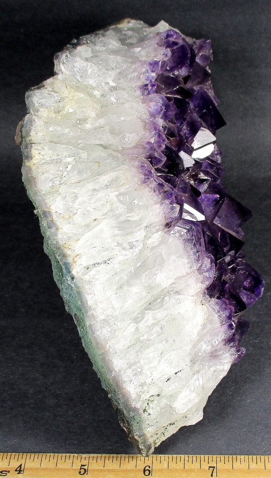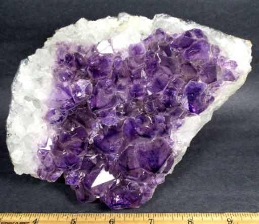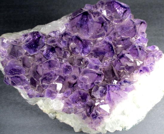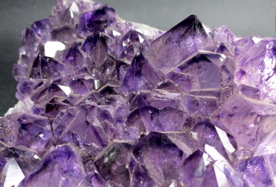 Amethyst is a purple variety of Quartz often used as an ornament. Upon exposure to heat, Amethyst generally becomes yellow, which some refer to as Citrine or “burnt” Amethyst. It occurs in color from a light, slightly pinkish violet to a deep grape purple. It is widely distributed as a mineral.