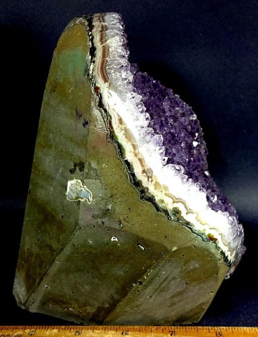 Amethyst is a purple variety of Quartz often used as an ornament. Upon exposure to heat, Amethyst generally becomes yellow, which some refer to as Citrine or “burnt” Amethyst. It occurs in color from a light, slightly pinkish violet to a deep grape purple. It is widely distributed as a mineral.