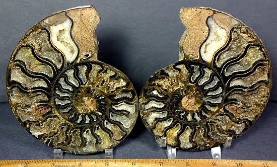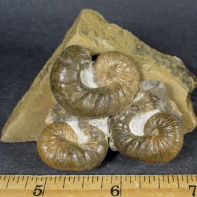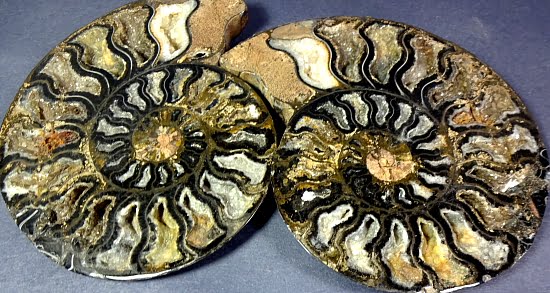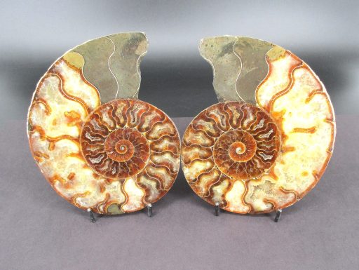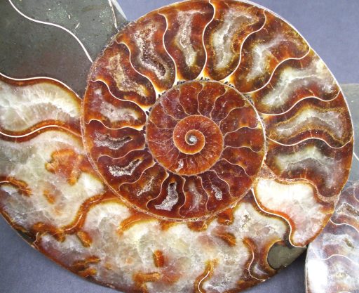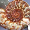 Ammonites are extinct members of the cephalopod group of mollusks. Only a limited number of species have survived to the present day which includes the squid and the chambered nautilus. Ammonites had a multi-chambered shell, and added more chambers as it grew, always living in the outer chamber. They lived in the Cretaceous period some 63 to 130 million years ago.