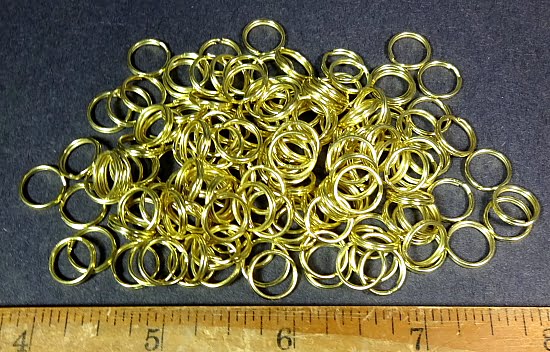 Here is an overstock item at The Rock Shed. A gross bag of gold plate 12mm double loop jump rings. Each bag has 144 double loop jump rings.