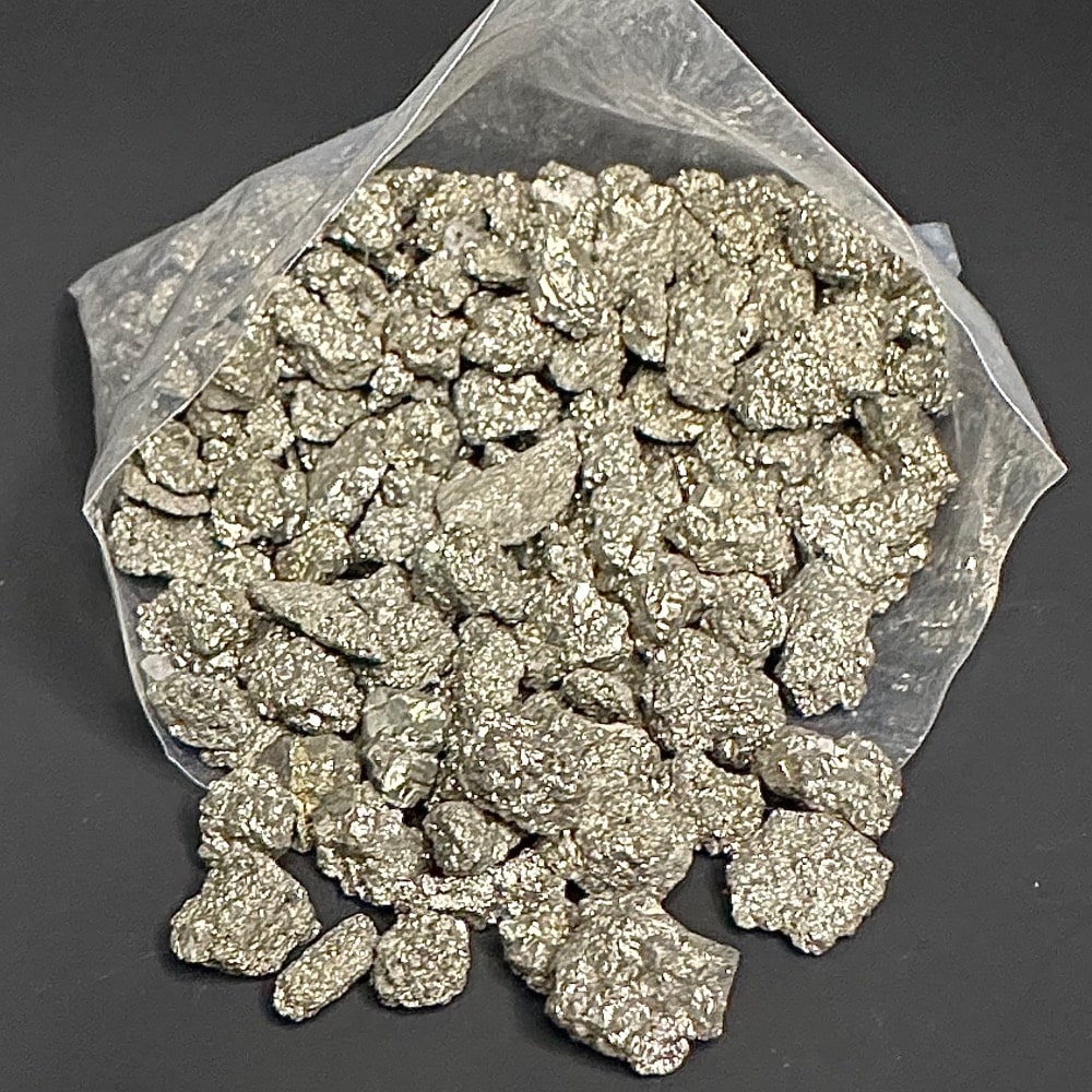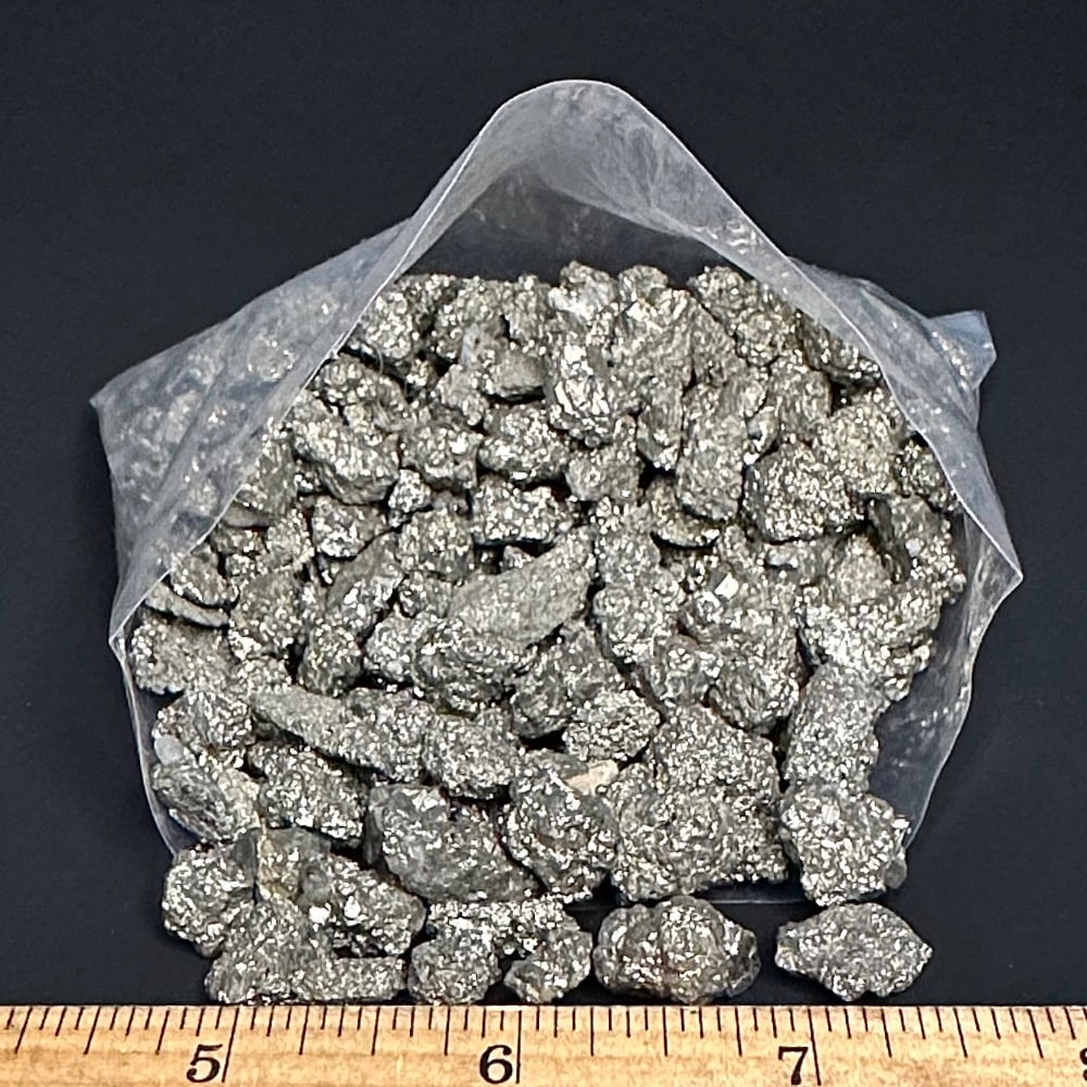 Pyrite, or Iron Pyrite, is an Iron sulfide with isometric Crystals that usually appear as cubes. It is brittle and can break or powder easily. Its metallic luster and brass yellow hue have earned it the nickname of “fool’s gold” due to many miners mistaken it for the real thing. Ironically, small quantities of actual gold are sometimes found in Pyrite. It is the most common of the sulfide minerals and is usually found with other sulfides or oxides in Quartz veins, sedimentary or metamorphic rocks.