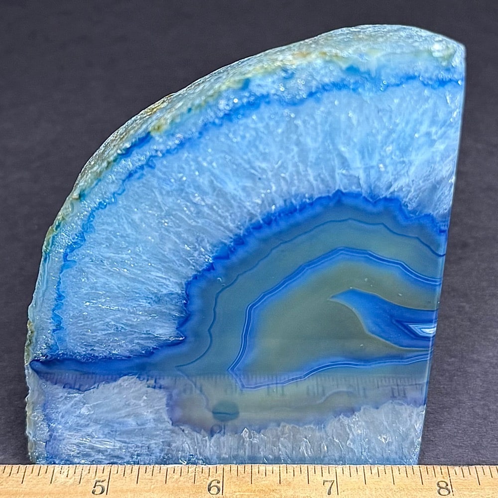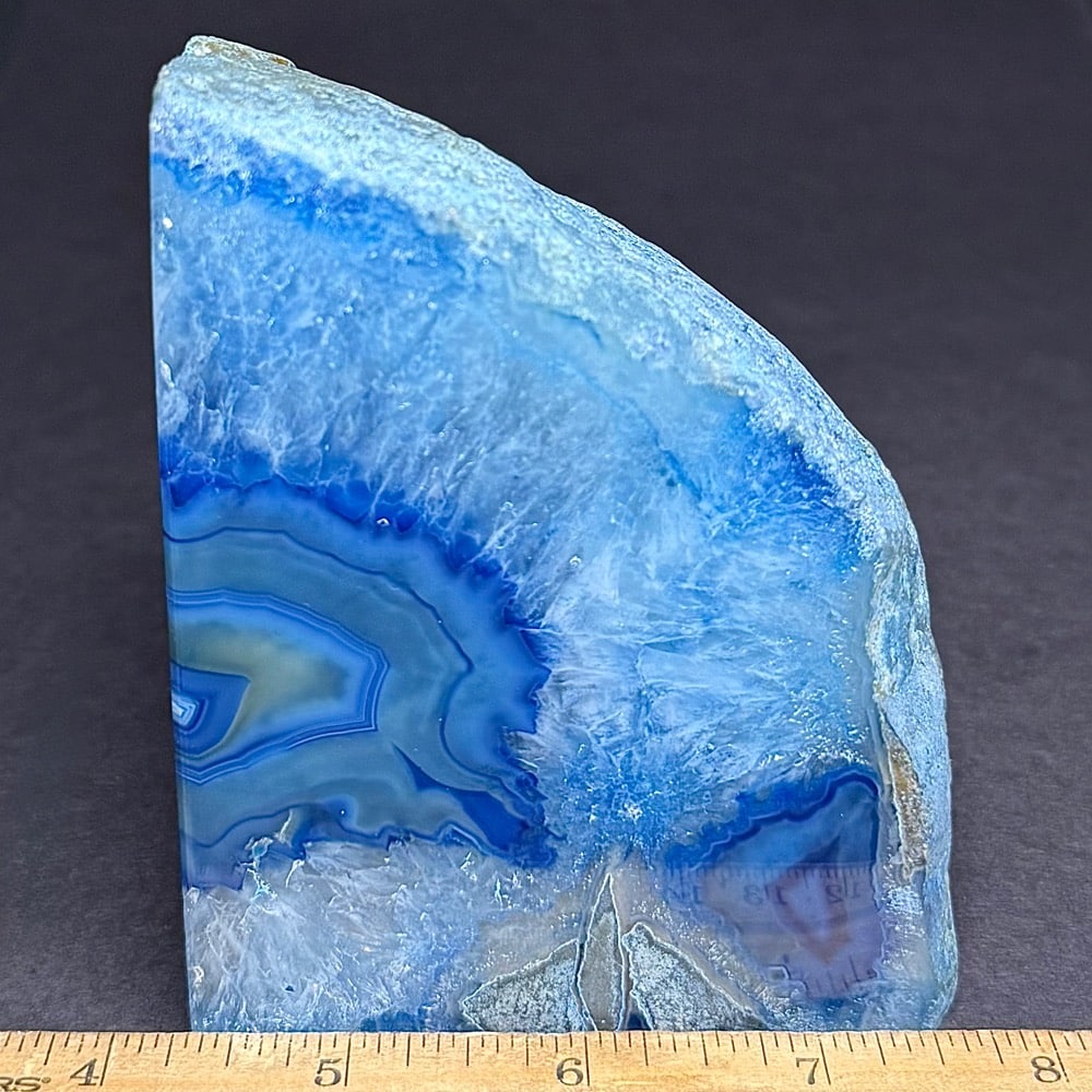 Appearance: Gorgeous blue (color enhanced) Brazil Agate half of a set bookend. Still useful at this greatly reduced price.