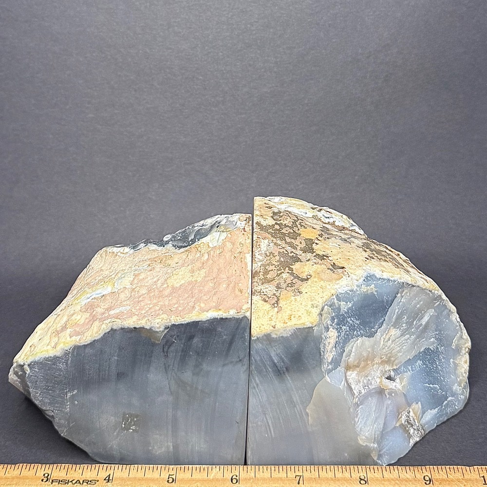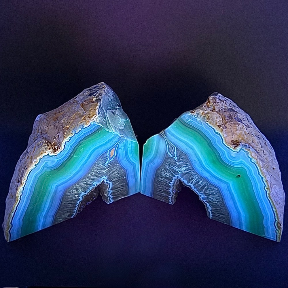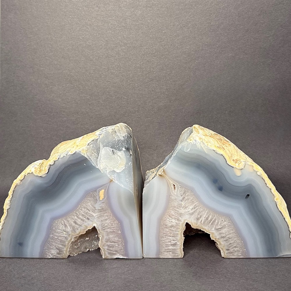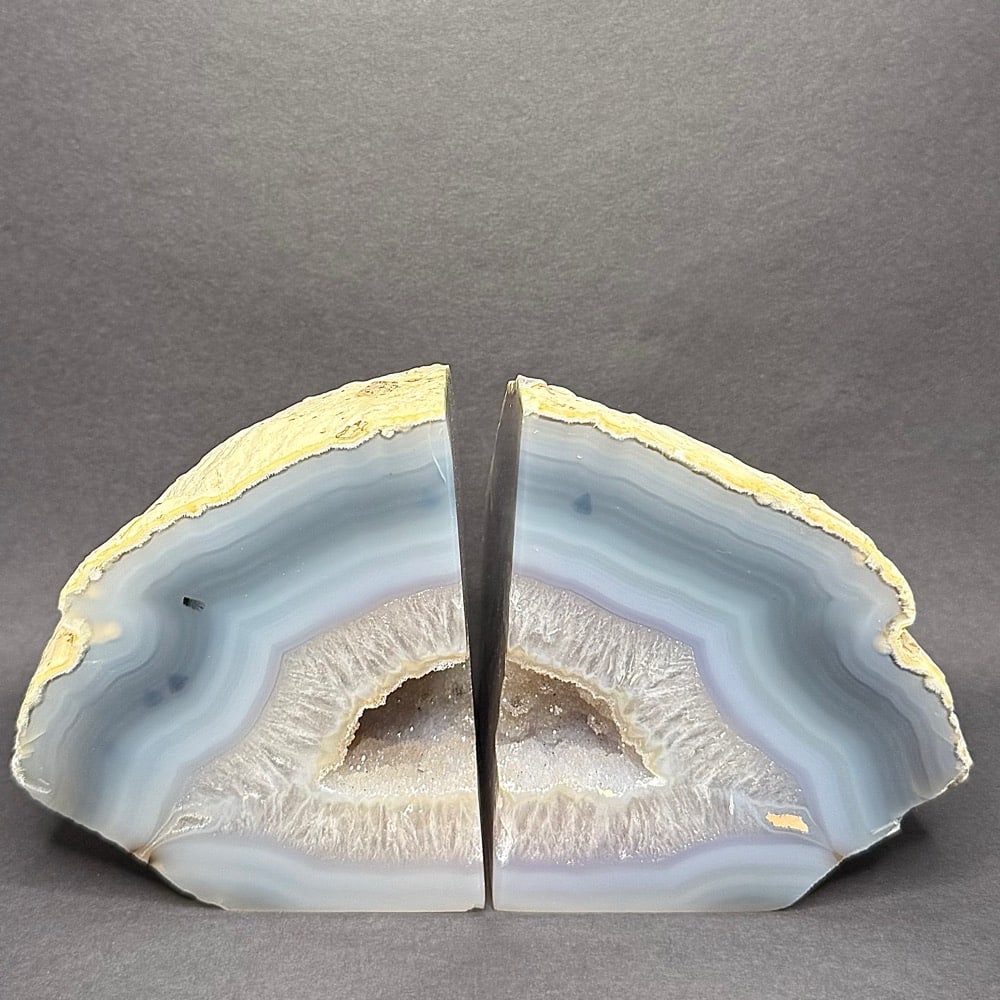 CL311: Chipped and Tipping Brazilian Agate Bookends Location: Brazil Selection: Rough and polished.