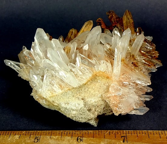 A fine selection of (4) different Crystal Quartz Clusters all from Madagascar. Use the drop-down menu to view each piece individually.  Measurements are recorded in L x W x H.