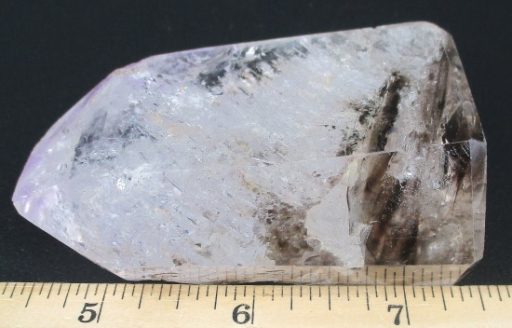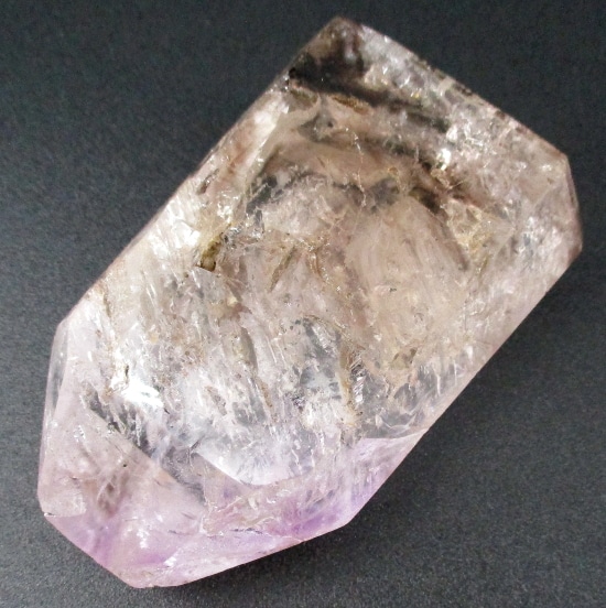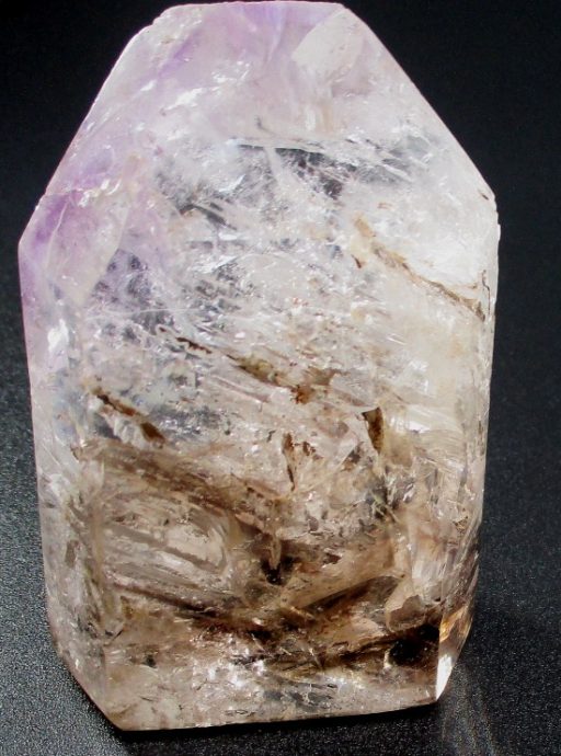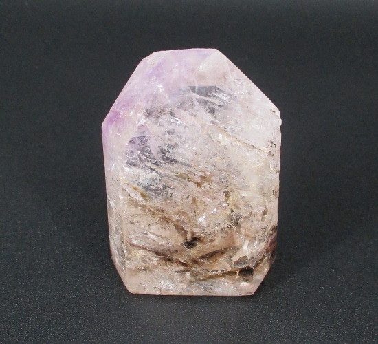 Here’s a spectacular Crystal Quartz from Brazil. It measures 2″ x 1 1/4″ x 3 1/8″ and has a great polish. It has great clarity, streaks of Smoky Quartz, a surprising purple hue, subtle “rainbow” reflections and neat inclusions! A great addition for any collection!