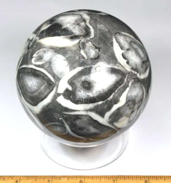 The Shell Marble sphere shown measures 4″ in diameter. (Shell Marble sphere is not included)
