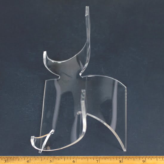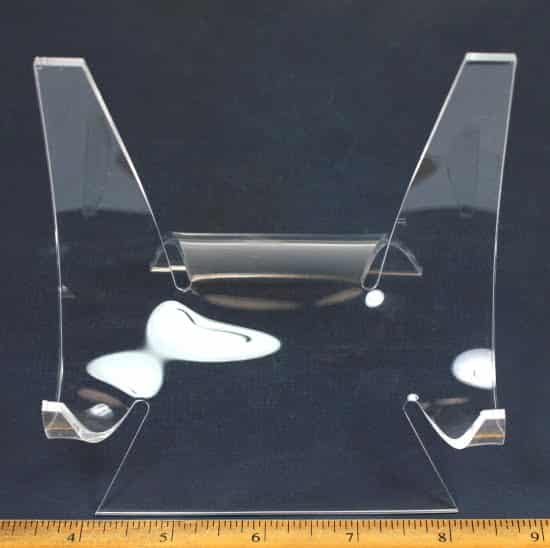 PD5 This is a clear curved plastic display stand for slabs. It measures 4 7/8″ wide. The total height from the base to the top edge of the stand is 4 7/8″.