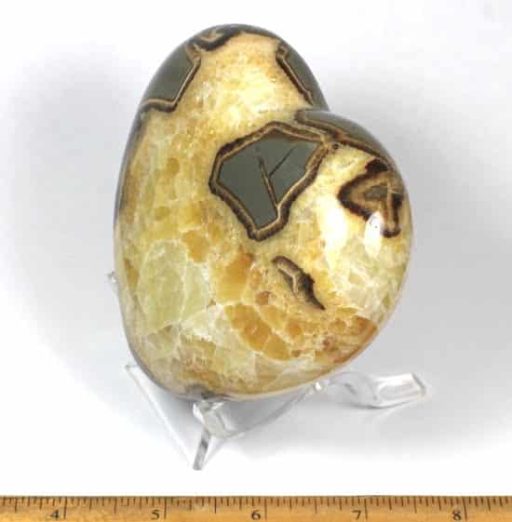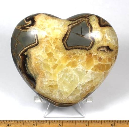 The Septarian heart shown measures nearly 4″ wide x 3 3/8″ x almost 1 1/2″ thick. (Septarian heart not included)