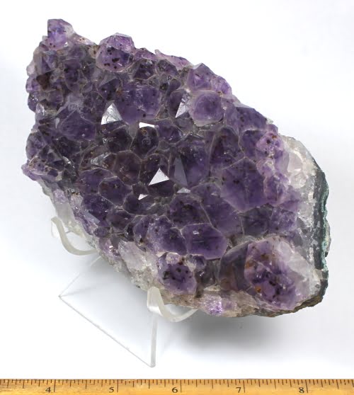 The Amethyst shown measures almost 6 3/4″ wide x 3 1/2″ x almost 2″ thick. (Amethyst specimen not included)