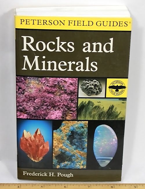 BK3 Peterson Field Guide – Rocks and Minerals by Frederick H. Pough – This book covers in depth most minerals, their composition and formations, how to identify them as well as how and where they form and has 64 pages of color pictures and descriptions of minerals. It measures 4 1/2″x 7″; 396 pages.