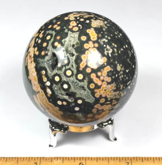 The Sea Jasper Sphere shown measures 2 1/2″ in diameter. (Sea Jasper sphere not included)