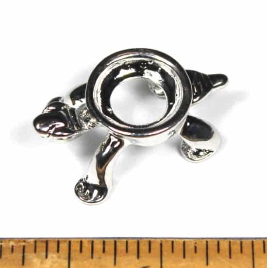 SD4 Here is a very tiny, really cute Turtle display stand. It measures 1 1/8″ x 3/4″ x 3/8″ tall and has a Silver plated finish. This little guy is so very adorable and has distinct facial accents. The sphere inner ring measures 1/2″ in diameter. The stand can hold several sizes but a 18 mm to 22 mm sphere works the best.