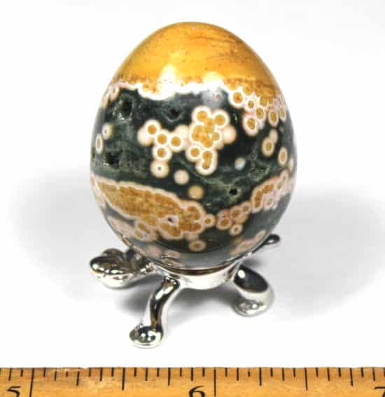 The Sea Jasper egg shown measures 1 1/8″ in diameter by 1 1/2″ tall. (Sea Jasper egg is not included)