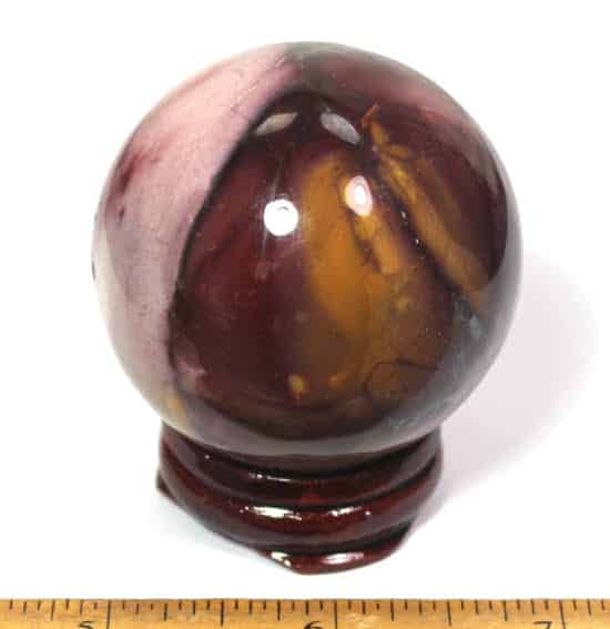 The Mookaite Jasper sphere shown measures 2″ in diameter. (Mookaite Jasper sphere is not included)