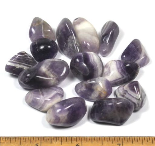 K101 This is a 1/4 pound bag of tumbled banded Amethyst.  There are approximately 8-10 pieces per 1/4 pound.  These stones will vary in size, shape, design, and shades of purple.