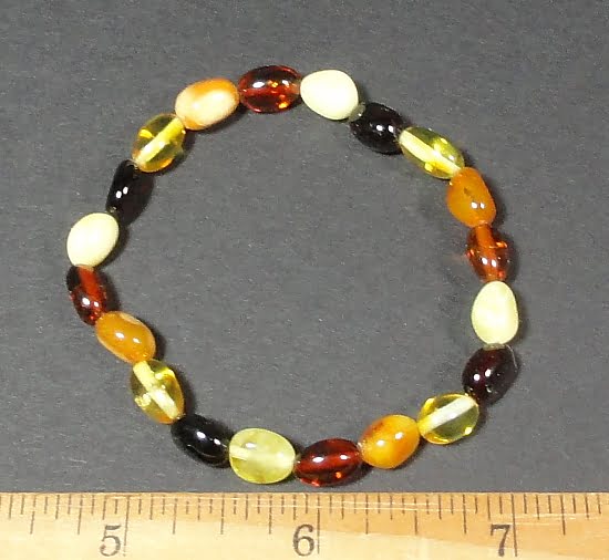 AM201 This is a nice Baltic Amber free form bead stretch bracelet. The bracelet measures approximately 2 1/2″ in diameter and has varying shades of Amber beads in alternating colors.
