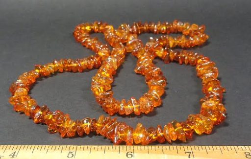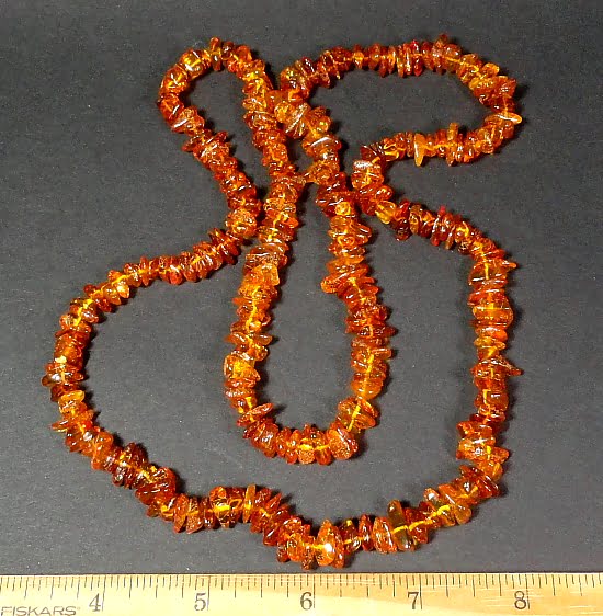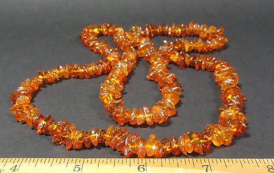 AM105 Here is a very nice Amber chip bead necklace. The beads measure approximately 10 mm in size and are made from Baltic Amber. This necklace measures approximately 30″ in length.