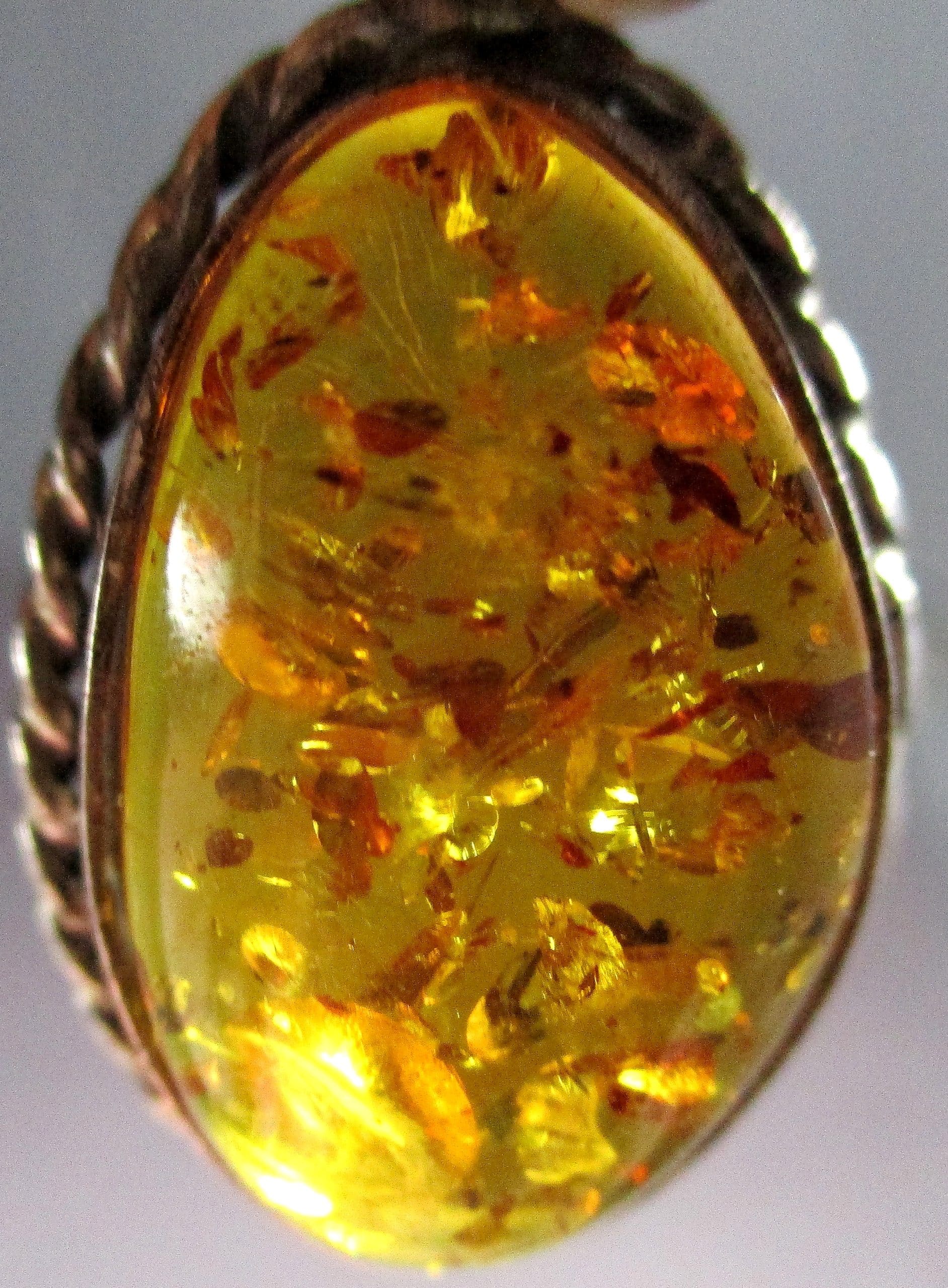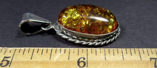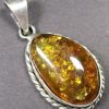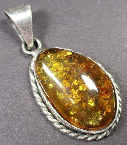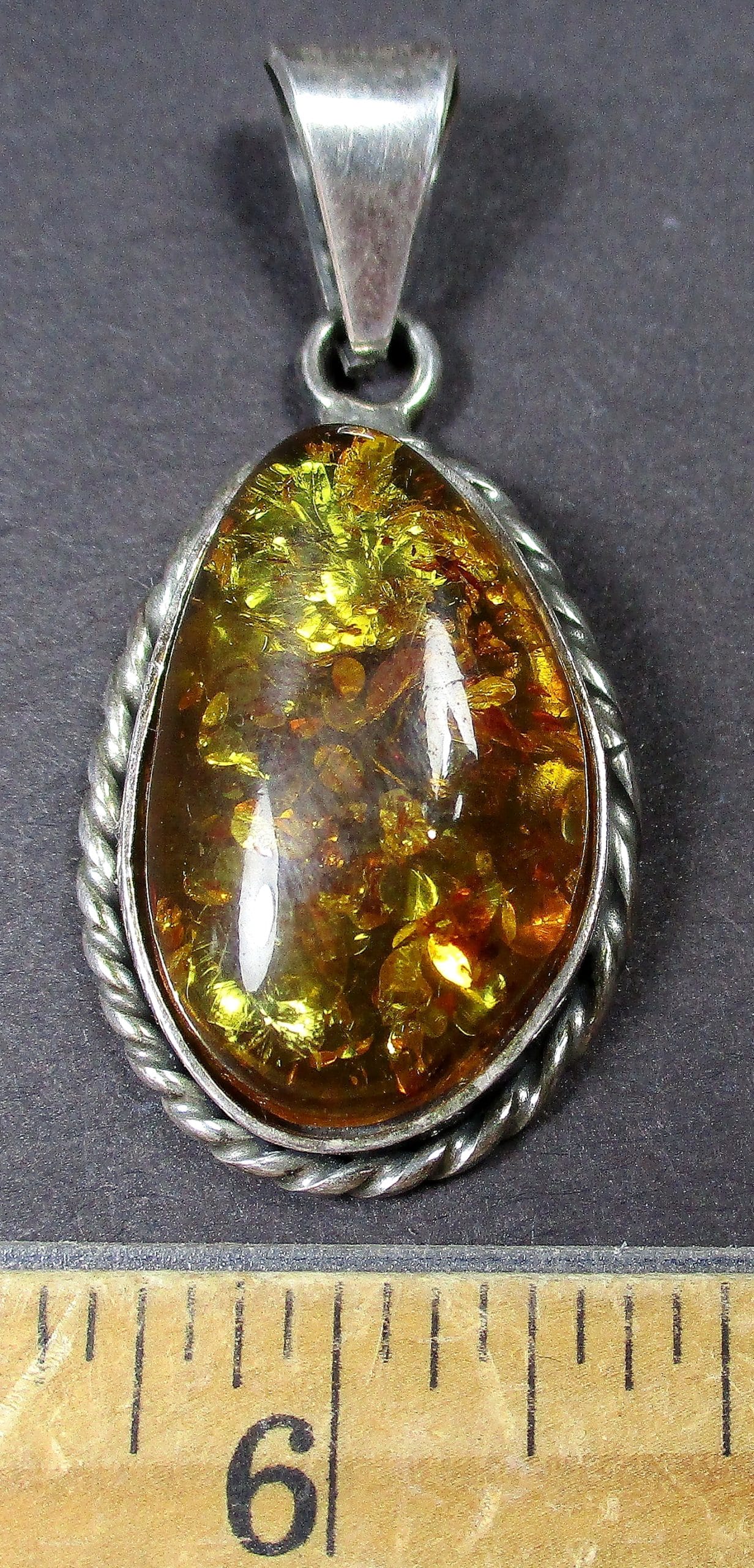 PN 709: Amber teardrop pendant with a twisted rope designed silver setting.