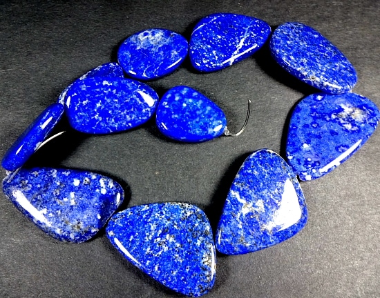 Lapis is a rock and not a mineral because it is made up from various other minerals. To be a mineral it would have one constituent only, and Lapis has several including Lazurite, Sodium, Aluminum, Silicon, Oxygen, Sulfur and Chlorine. Most Lapis contains Calcite, Sodalite and Pyrite. The best color is an intense blue that is lightly dusted with small flecks of Pyrite. Lapis takes an excellent polish and has been made into jewelry, carvings, boxes, mosaics and ornamental objects.