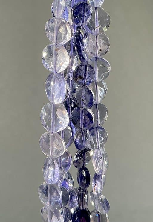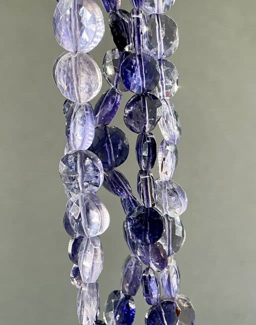 Iolite is the gem variety of Cordierite. Iolite can be light to deep blue and usually has a purplish tinge to it. The name “iolite” comes from the Greek word for violet. Another old name is dichroite, a Greek word meaning “two-colored rock”, a reference to cordierite’s strong pleochroism. It has also been called “water-sapphire” and “Vikings’ Compass” because of its usefulness in determining the direction of the sun on overcast days, the Vikings having used it for this purpose.