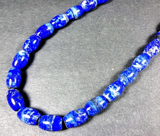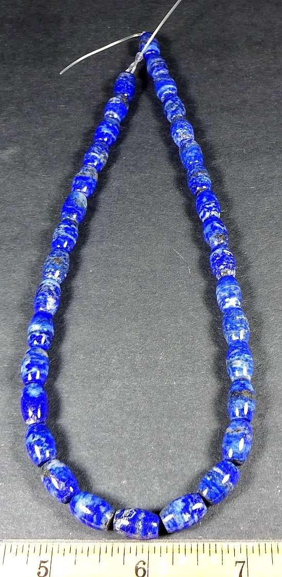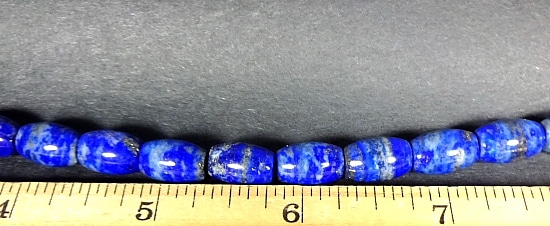 Here is a temporary strand of Lapis Barrel Shaped Beads. These beads measure roughly 3/8″x 1/4″  and there are approximately 33 beads per strand.