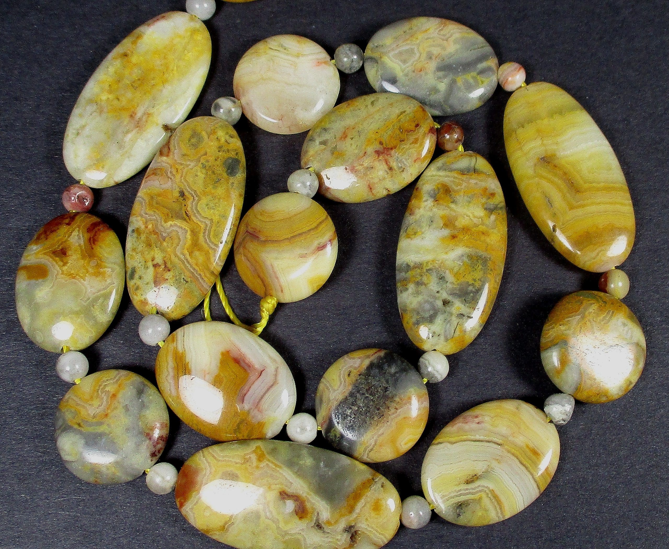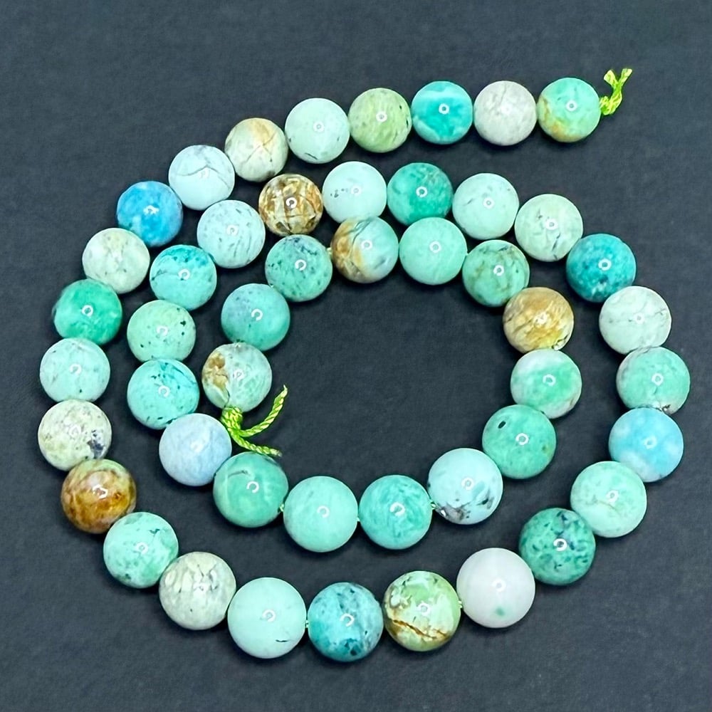Chrysocolla is of secondary origin and forms in the oxidation zones of copper ore. Some associated minerals are Quartz, Limonite, Azurite, and Malachite and Chrysocolla is often confused with Turquoise as they are similar in color. It gets its name from Greek chrysos “gold” and kolla “glue”. It is known among Native American cultures as a healing stone and said to promote calm and level headedness.