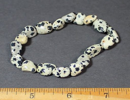 Dalmatian Stone, or orbicular Rhyolite, is an igneous rock that was formed by lava flows on the Earth’s surface. The spots or “orbs” probably occurred when molten lava reacted with fragments of rock known as Xenoliths. These stones are light to dark tan in color with black spots throughout. The nickname “Dalmatian” was given to this unusual looking mineral because of its resemblance to a Dalmatian dog’s spots.