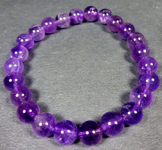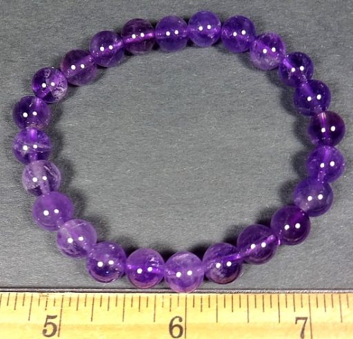 Here is a very pretty Amethyst Gemstone stretch beads bracelet.  The bracelet measures approximately 2 1/8″ in diameter. It has varying shades of the colorful Amethyst polished beads. Very pretty!