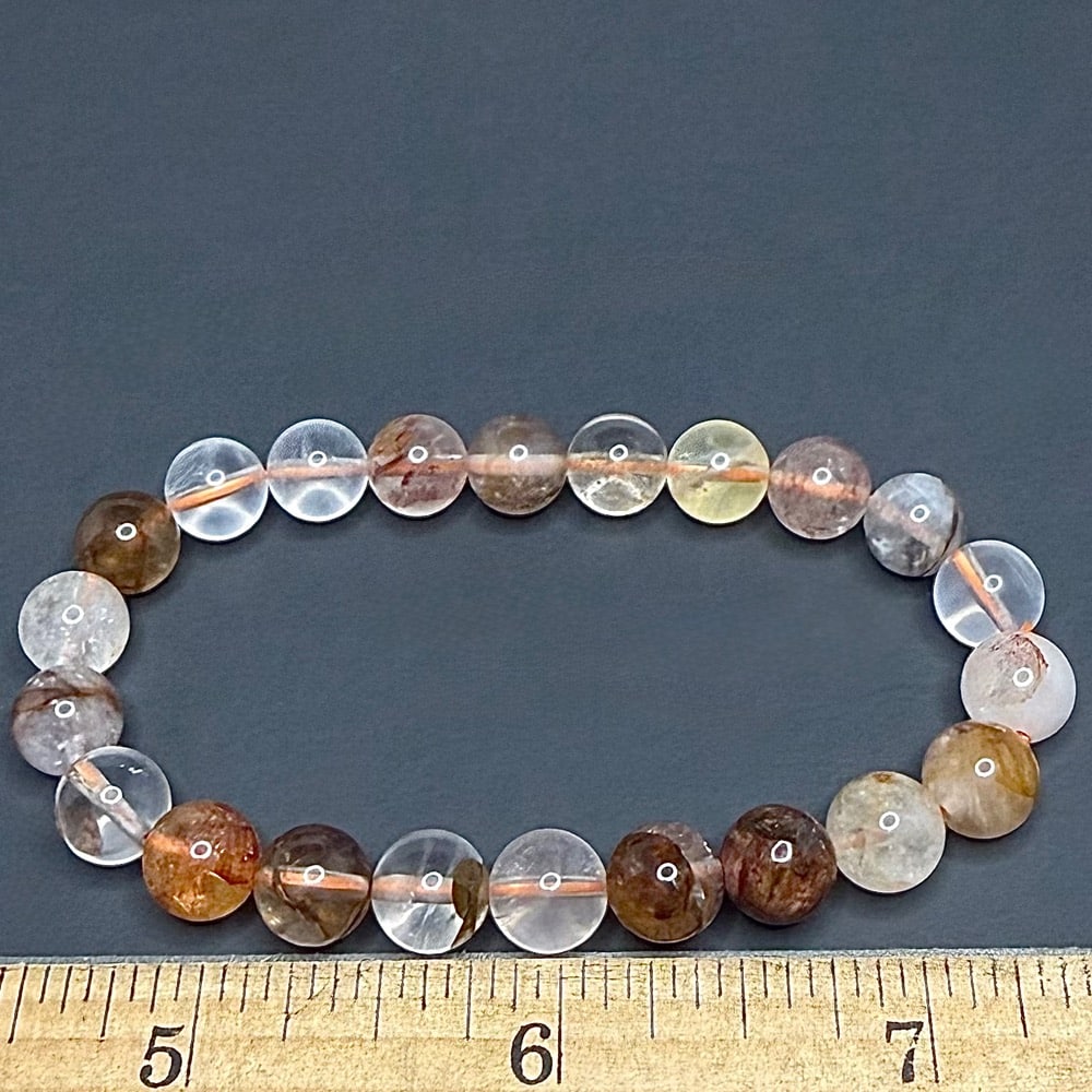 BR403: Iron Quartz Bead Bracelet Selection: Polished gemstone stretch bracelet.