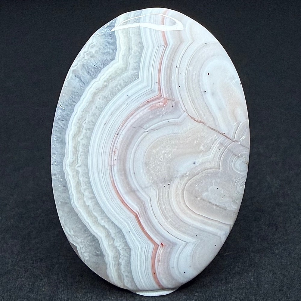 Among the best-known varieties of banded chalcedony is the stone often known as Mexican Crazy Lace Agate. The hardness of the material makes it a joy to cut, while the intricate patterns have made it a favorite since the 1950s. This unique agate forms into many different patterns in many colors, but the stones generally have a common “theme.”