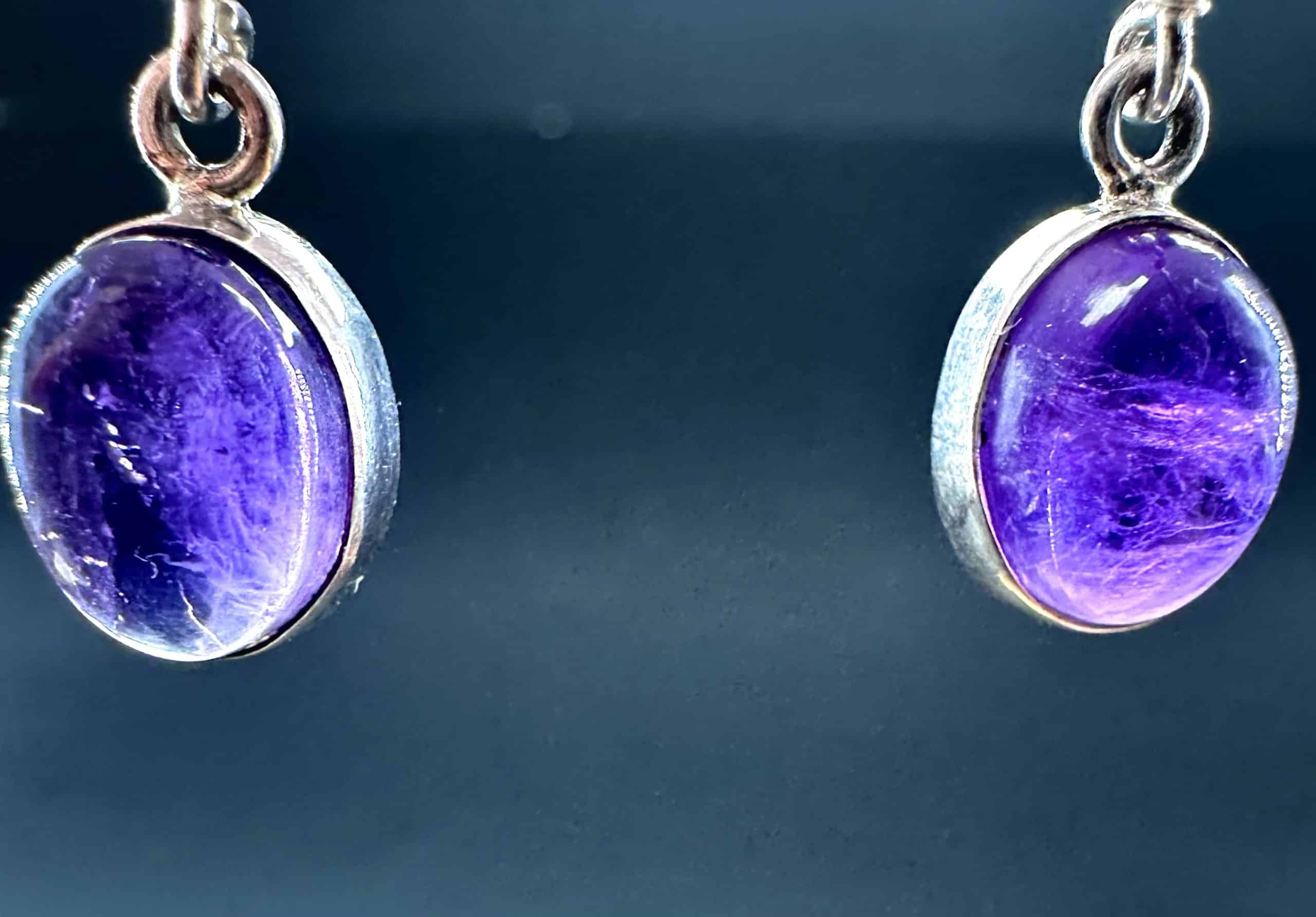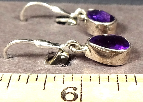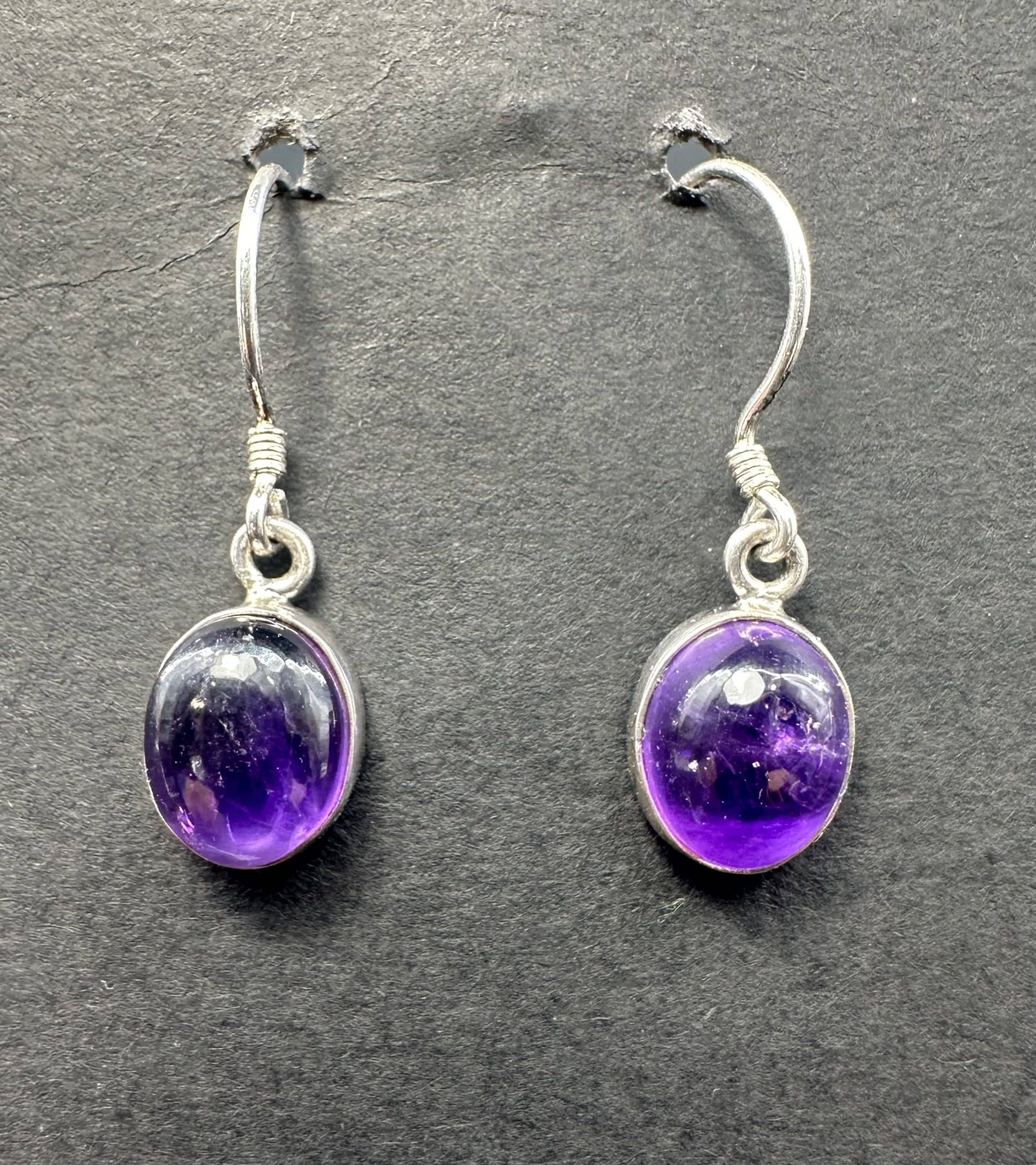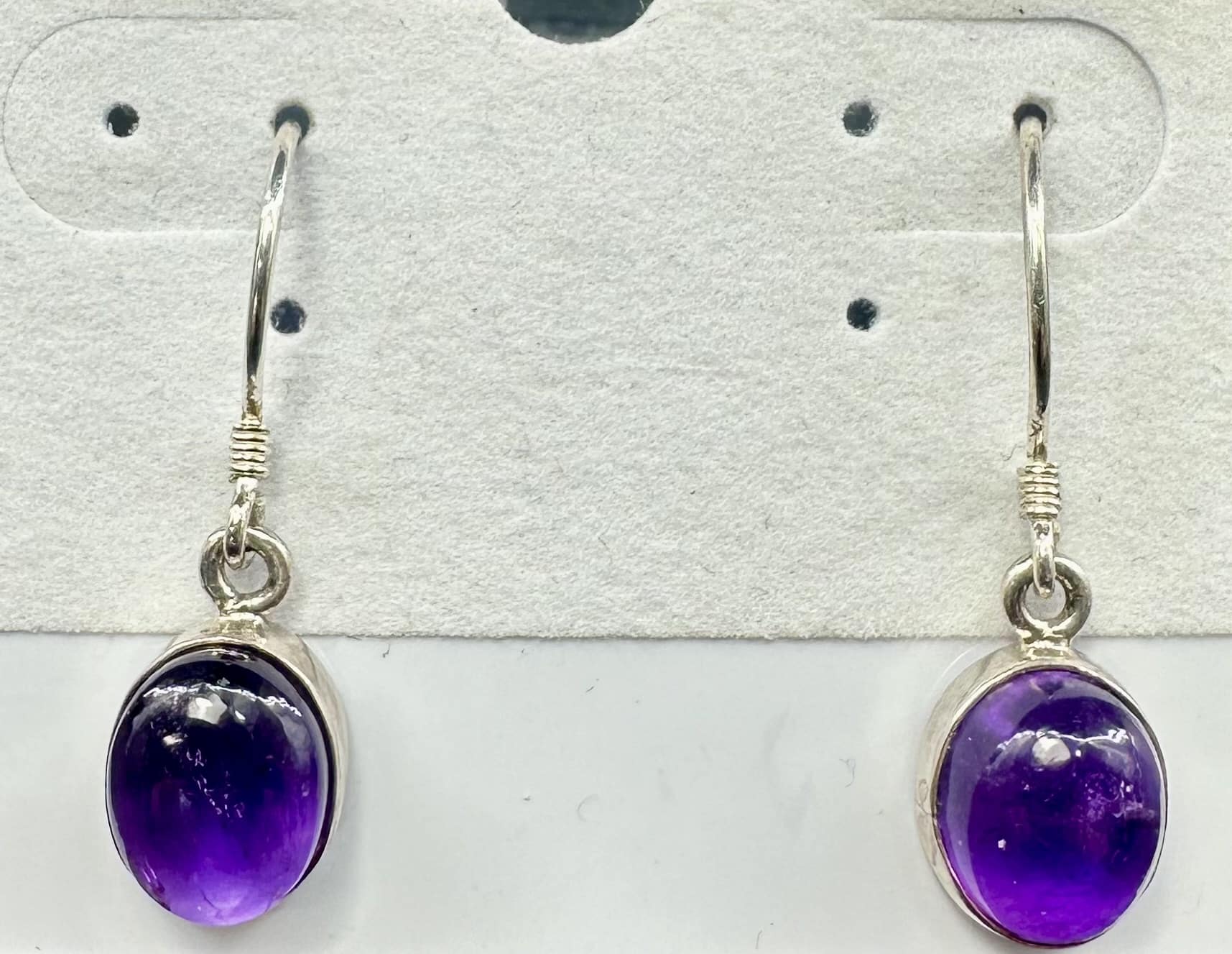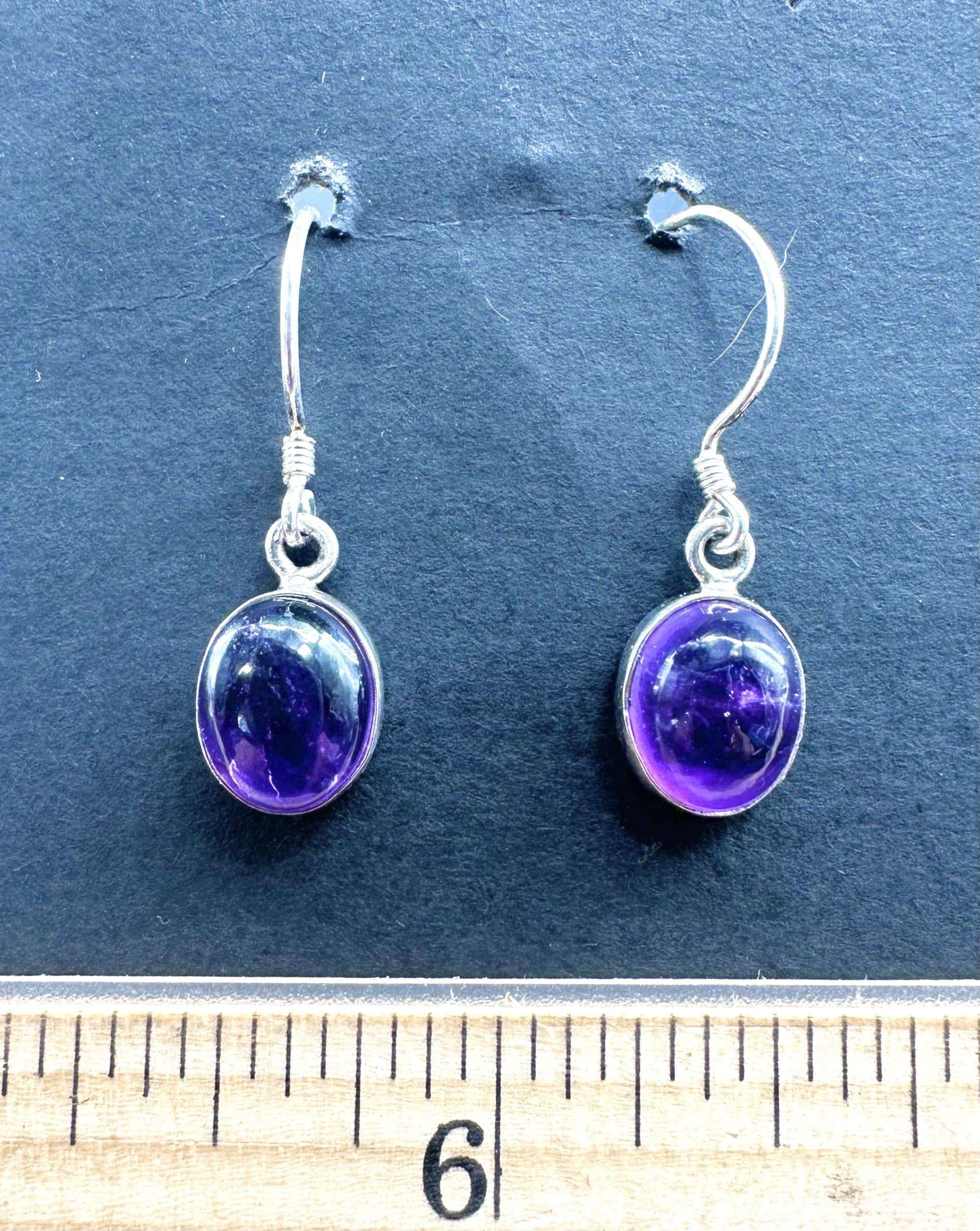 Approximate measurements: Gemstone cabochon in silver setting  – 8mm x 6mm x10mm: Full length of earring – 3/8″