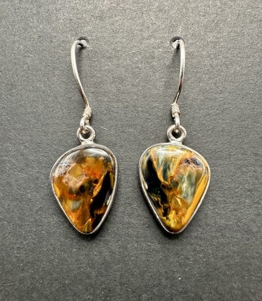 Pietersite was discovered by Sid Pieters in 1962 while prospecting farmland in Namibia, Africa and was named after him in 1964. Currently there are only two known sources of Pietersite: Africa and China. Pietersite is considered a type of Tiger Eye, having the same properties but with different patterns due to it’s brecciated formation. While Pietersite has the lovely chatoyancy of Tiger Eye, it is not found in continuously structured bands but rather in swirls, swathes and fibrous (sometimes linear) segments. They appear chaotic and can exist in many directions like bold paint strokes. African Pietersite is the most sought after due to it’s wide range of color which include various blues, golds, and reds with blue being the rarest followed by red.