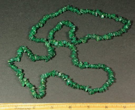 LN101 Here is a dark Green Aventurine chip bead necklace. These beads are nicely shaped, well polished and average 5 to 6 mm in size. They are nice quality chip beads. This strand is 34″ in length.