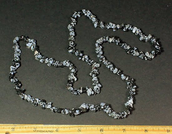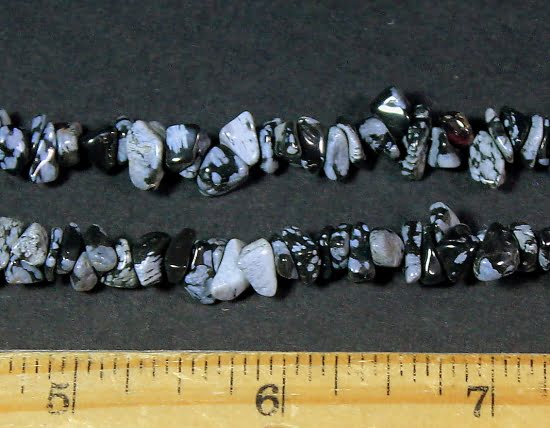 In some stones, the inclusion small, white, radially clustered crystals of cristobalite in the black glass produce a blotchy or snowflake pattern (snowflake obsidian).