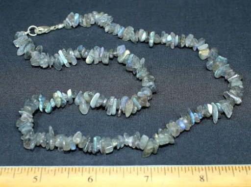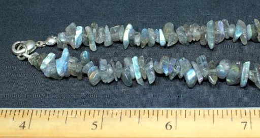 Labradorite is a Feldspar mineral that occurs in large crystal masses in anorthosite and shows an iridescence or “play of colors.” Gemstone varieties of Labradorite exhibiting a high degree of iridescence are Spectrolite, Moonstone and Sunstone. High quality samples with good iridescent qualities are desired for jewelry.
