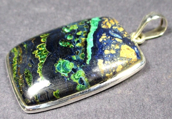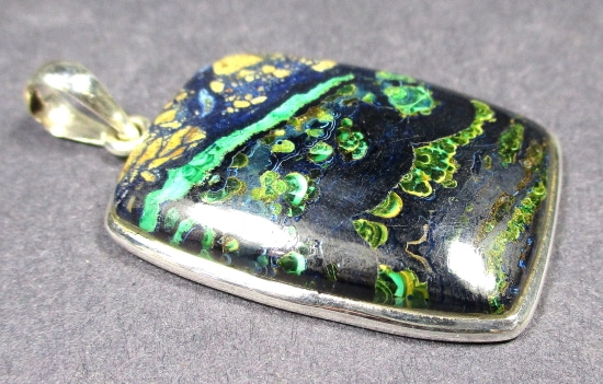 Malachite is a Copper Carbonate mineral that often forms botryoidal, fibrous or stalagmitic masses. It is often the result of the weathering of Copper Ores and is commonly found with Azurite, Goethite and Calcite. It is typically associated with Copper deposits including Limestone which is the source of the Carbonate. Malachite is found in many regions worldwide and is usually shaded green in color.