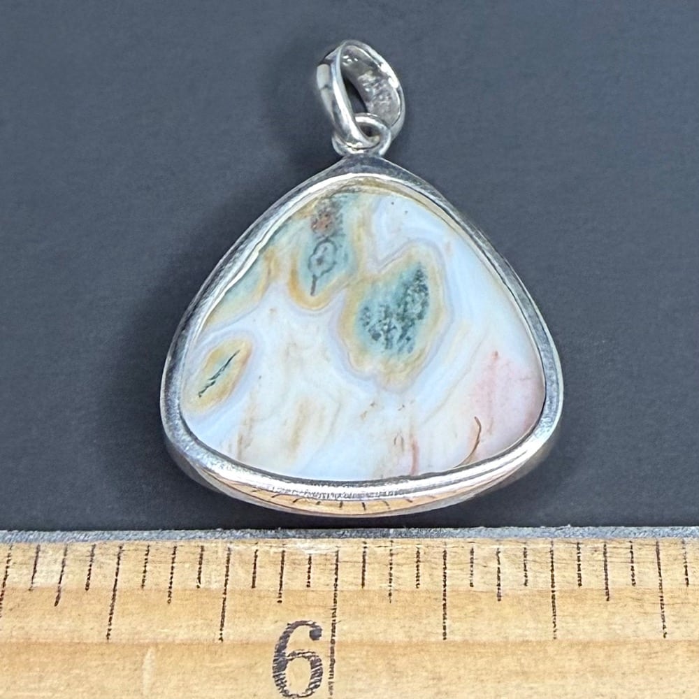 Jasper, or spotted stone, is an opaque, impure variety of Quartz that is usually red, yellow or brown in color. Picture Jasper’s simultaneously exhibit several variants such as banding, flow patterns, dendrites or color variations. This results in what appears to be scenes or images in a cut section of the Jasper.
