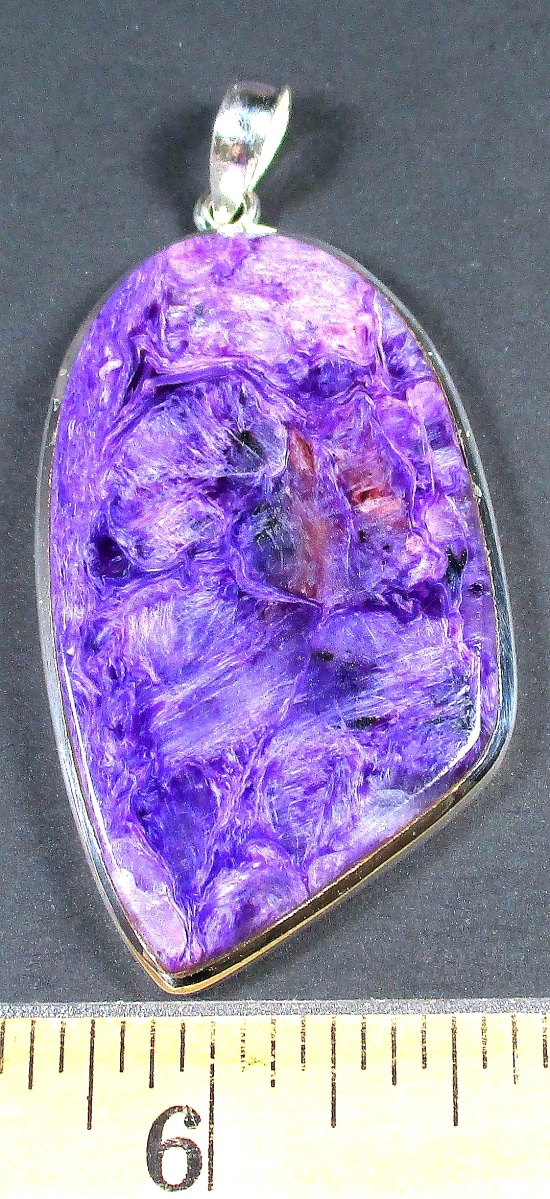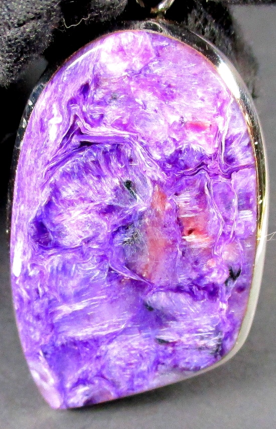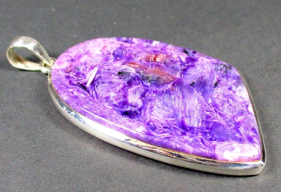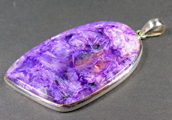 Charoite is newly found mineral, first discovered in the 1940s and described to the world in 1978. It is found only in Siberia, Russia and is a translucent lavender to purple color. Charoite has a swirling, fibrous appearance and is strictly massive in nature. It is used as an ornamental stone and sometimes as a gemstone.