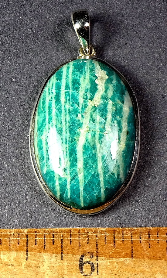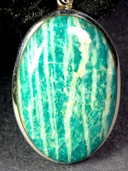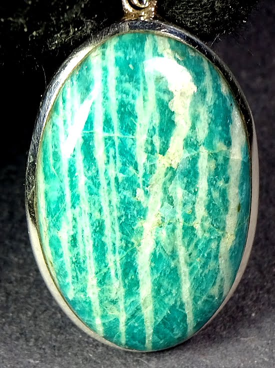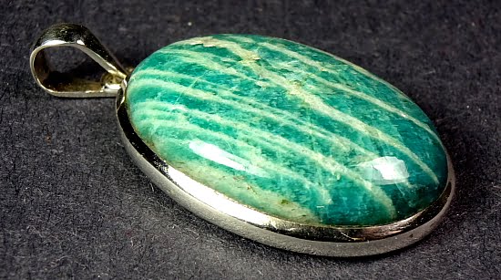 Amazonite is a green variety of Feldspar. The name is taken from that of the Amazon River, from which certain green stones were formerly obtained, but it is doubtful whether green Feldspar occurs in the Amazon area. It is a mineral of limited occurrence but is often associated with smoky Quartz, Orthoclase and Albite in a coarse Granite or Pegmatite. Because of its bright green color when polished, Amazonite is sometimes cut and used as a gemstone, although it is easily fractured.
