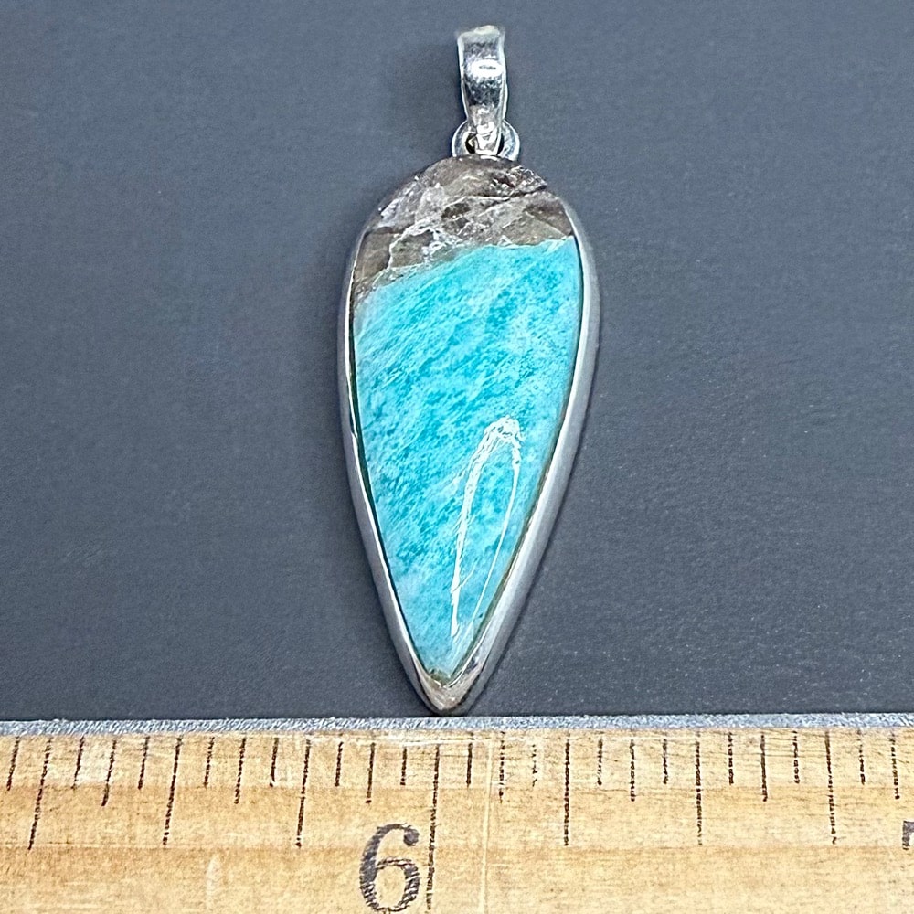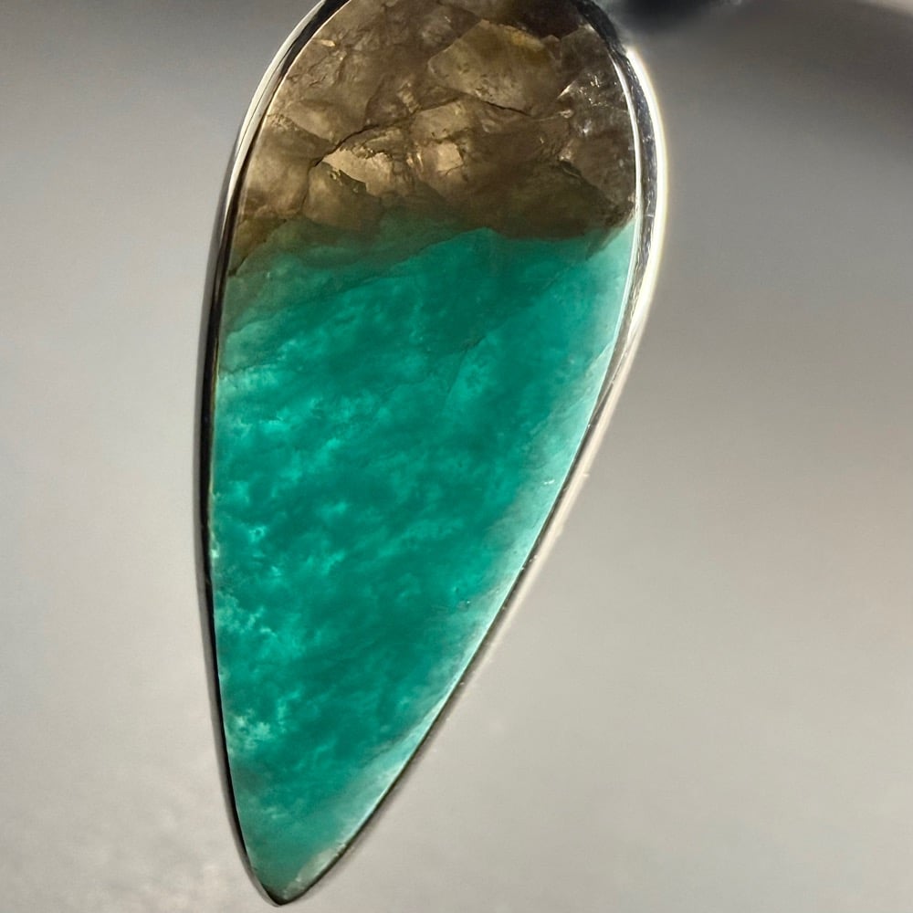 Amazonite is a green variety of Feldspar. The name is taken from that of the Amazon River, from which certain green stones were formerly obtained, but it is doubtful whether green Feldspar occurs in the Amazon area. It is a mineral of limited occurrence but is often associated with smoky Quartz, Orthoclase and Albite in a coarse Granite or Pegmatite. Because of its bright green color when polished, Amazonite is sometimes cut and used as a gemstone, although it is easily fractured.