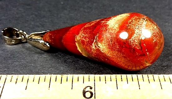 Approximate measurements: Cabochon – LxWxH – 32mm x 35mm. Top to bottom – 1 7/8″.  Bail – 1/4″.